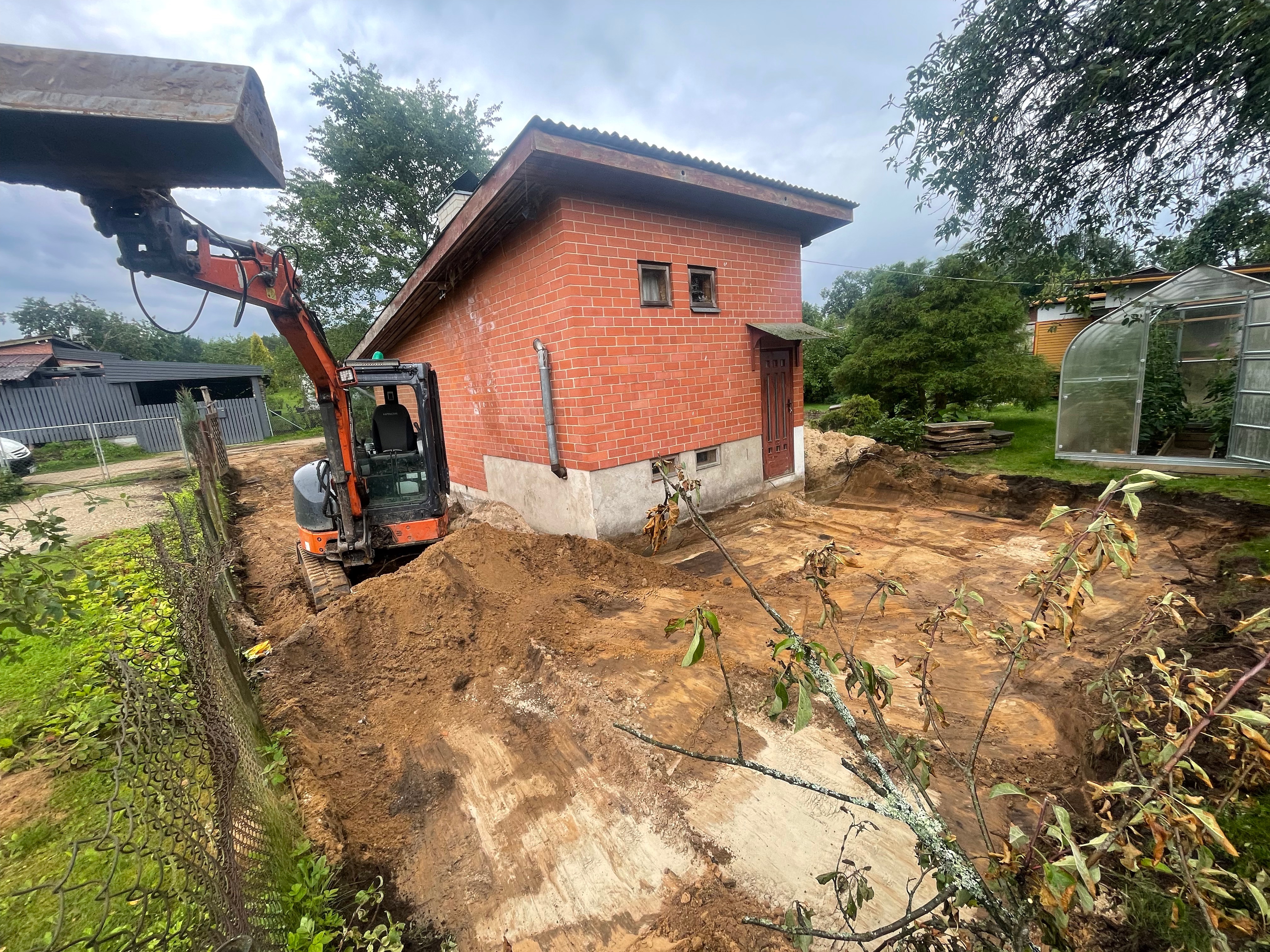 - Rakšanas darbus (Tranšejas rakšana, kanalizāciju un noteku izbūve, līdzināšanas darbus, dīķu izveide, koku sakņu izraušana)